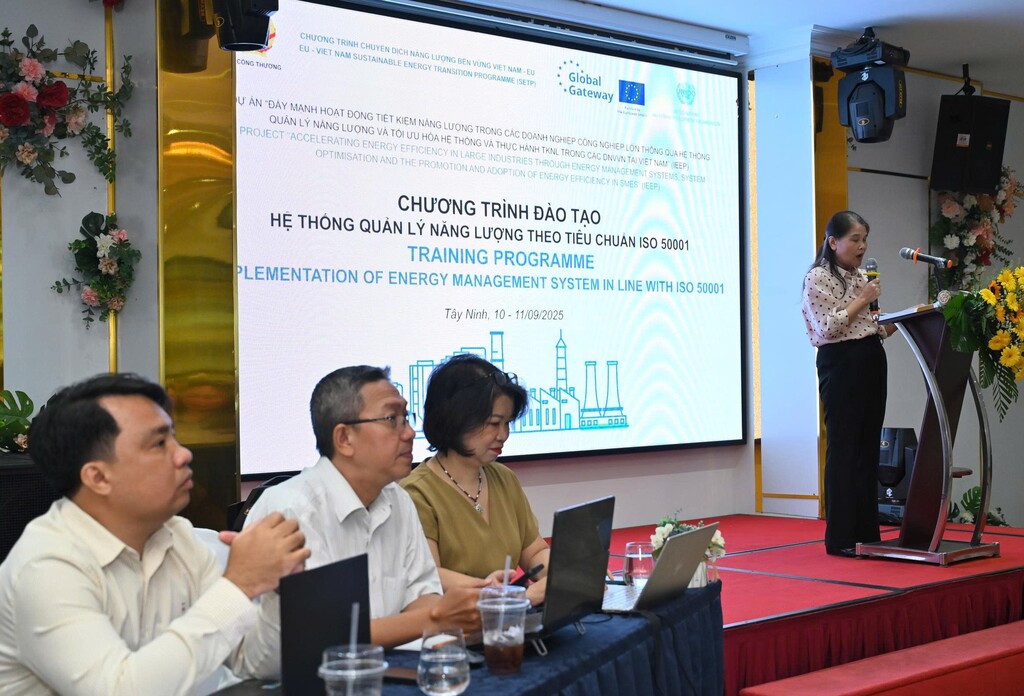 On the morning of September 10, 2025, in Tay Ninh, the Ministry of Industry and Trade (MOIT), in collaboration with the United Nations Industrial Development Organization (UNIDO), organized a training course titled “Establishing and Operating an Energy Management System According to ISO 50001 Standards.”