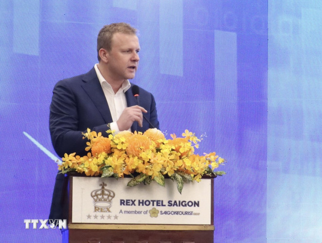 Ông Johan Van Den Ban, Tổng Giám đốc De Heus Việt Nam và châu Á chia sẻ xu hướng đầu tư tại diễn đàn. (Ảnh: Xuân Anh/TTXVN)