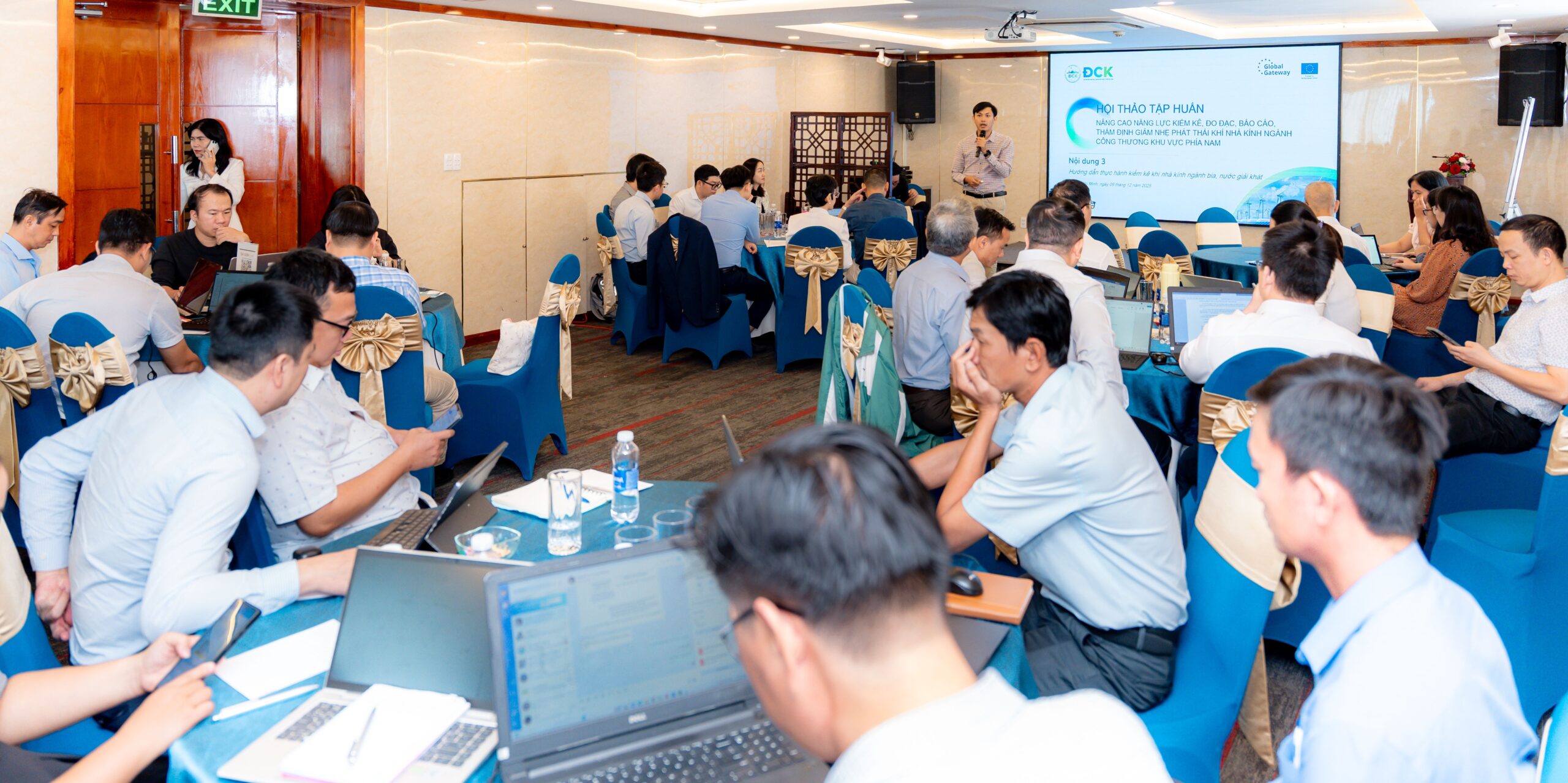 Ngày 9/12/2025 tại TP. Hồ Chí Minh, Dự án Hỗ trợ Kỹ thuật Chuyển dịch Năng lượng Bền vững Việt Nam – EU (EVSET) phối hợp với Cục Đổi mới sáng tạo, Chuyển đổi Xanh và Khuyến công (ĐCK), Bộ Công Thương, tổ chức hội thảo tập huấn với chủ đề “Nâng cao năng lực kiểm kê, đo đạc, báo cáo và thẩm định giảm nhẹ phát thải khí nhà kính trong ngành công thương”. Hoạt động nằm trong khuôn khổ gói hỗ trợ kỹ thuật do Liên minh châu Âu tài trợ, nhằm giúp Việt Nam tăng cường năng lực quản lý khí hậu và thực hiện các cam kết trong Chương trình Chuyển dịch Năng lượng Bền vững Việt Nam – EU (SETP).